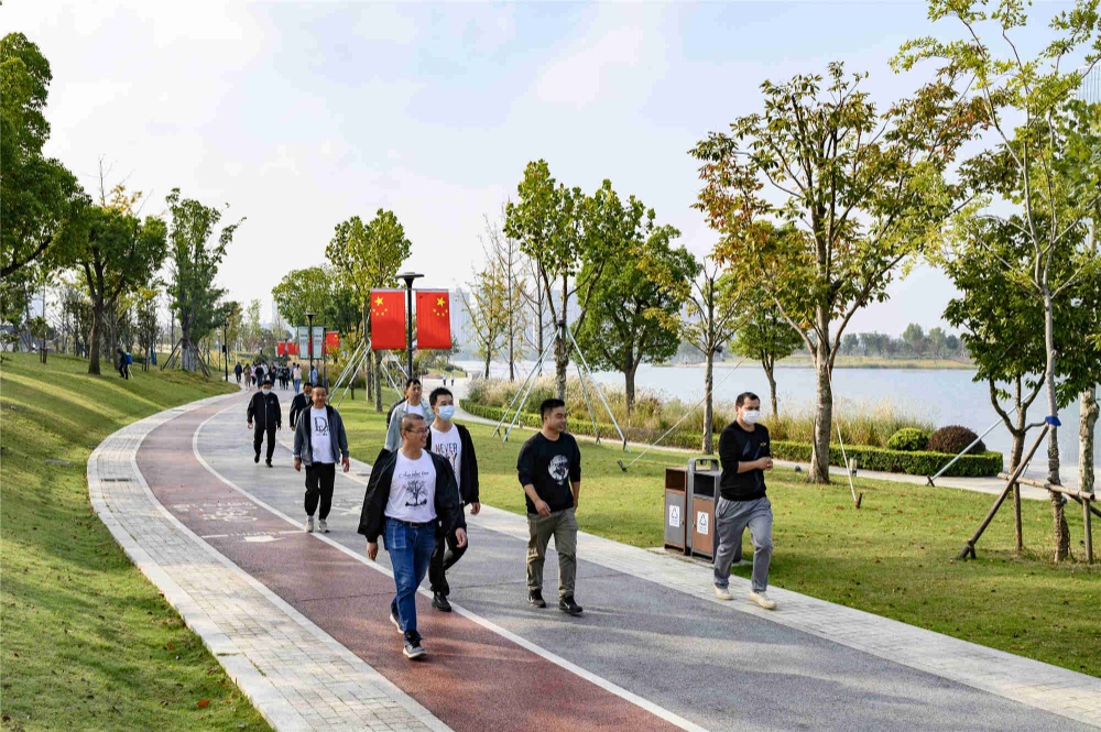 秋風(fēng)送爽,秋意盎然,聞著秋天的味道、聽著秋天的聲音,我們出發(fā)啦!隨著行進(jìn)口號響起,環(huán)湖綠道上頓時熱鬧了起來。一路上,員工們你追我趕向前沖!有勁走的,有小步快速行走的,也有達(dá)人一路小跑的,雖然不是比賽,雖非運(yùn)動員標(biāo)準(zhǔn)動作,但大家盡情體驗(yàn)著快樂、感受著美景,個個臉上洋溢著興奮與喜悅。行進(jìn)隊(duì)伍一路揮灑的熱情為輕紗薄霧中的秀湖平添了一道獨(dú)特而亮麗的動感風(fēng)景線。