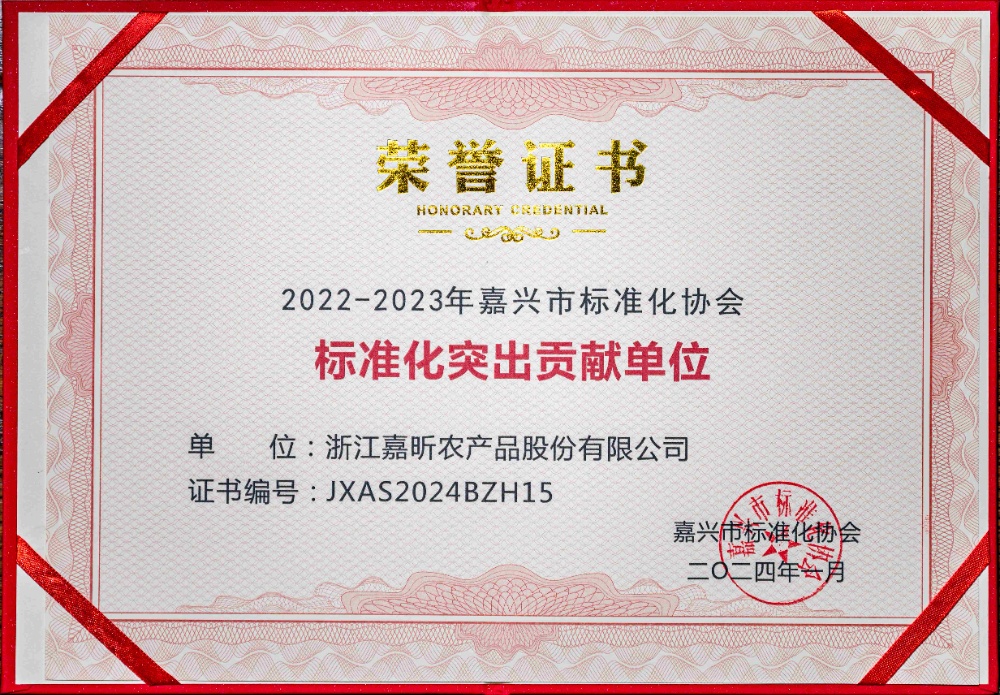 嘉興市標(biāo)準(zhǔn)化協(xié)會(huì)2022-2023標(biāo)準(zhǔn)化突出貢獻(xiàn)單位