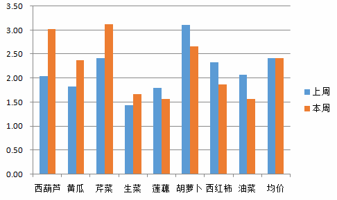 原因:本地大棚蔬菜供應(yīng)不足,外運(yùn)蔬菜量大量增加,出貨量大,上周貨源量減小,而且正處于換擋季節(jié),部分蔬菜上市量減少,西葫蘆、黃瓜等已經(jīng)過了大量上市的季節(jié),剩余的貨量較小,造成價(jià)格上漲。蓮藕環(huán)比下降12.70%,胡蘿卜環(huán)比下降14.22%,西紅柿環(huán)比下降19.63%,油菜環(huán)比下降24.14%。