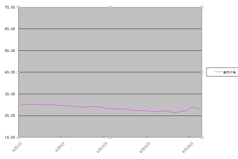 豬肉批發(fā)均價(jià)(白條肉批發(fā)均價(jià),下同)為23.49元/公斤,環(huán)比下降15.9%,同比下降44.3%。
