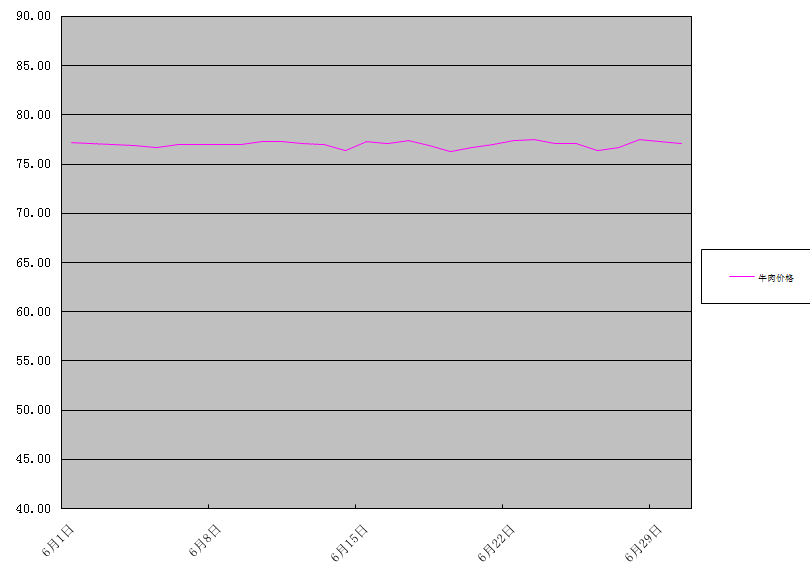 牛肉批發(fā)均價(jià)為76.98元/公斤,與上月基本持平,同比上升8.7%。羊肉批發(fā)均價(jià)為74.83元/公斤,環(huán)比下降2.3%,同比上升10.6%。