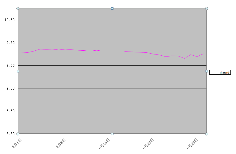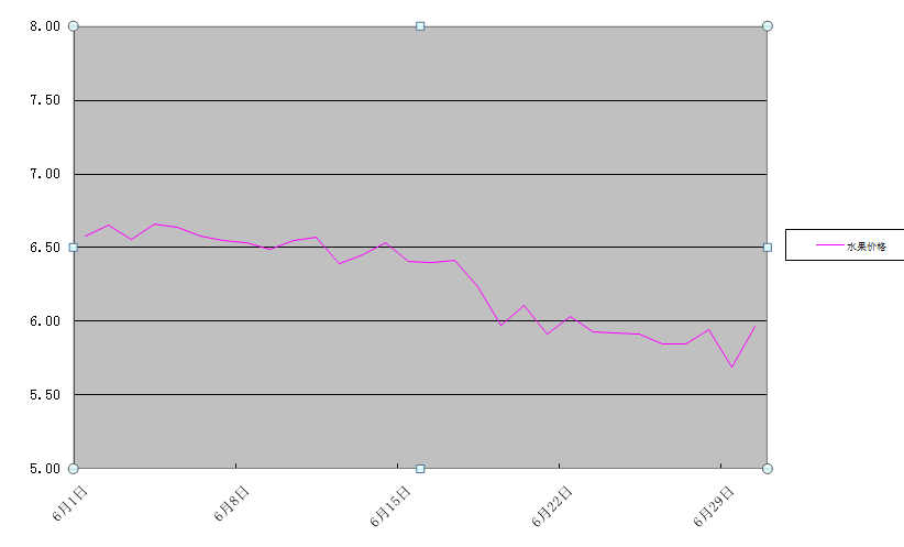 本月鴨梨、富士蘋果、巨峰葡萄、香蕉、菠蘿和西瓜6種水果批發(fā)均價(jià)為6.27元/公斤,環(huán)比下降7.9%,同比上漲7.0。來源:農(nóng)業(yè)農(nóng)村部信息中心